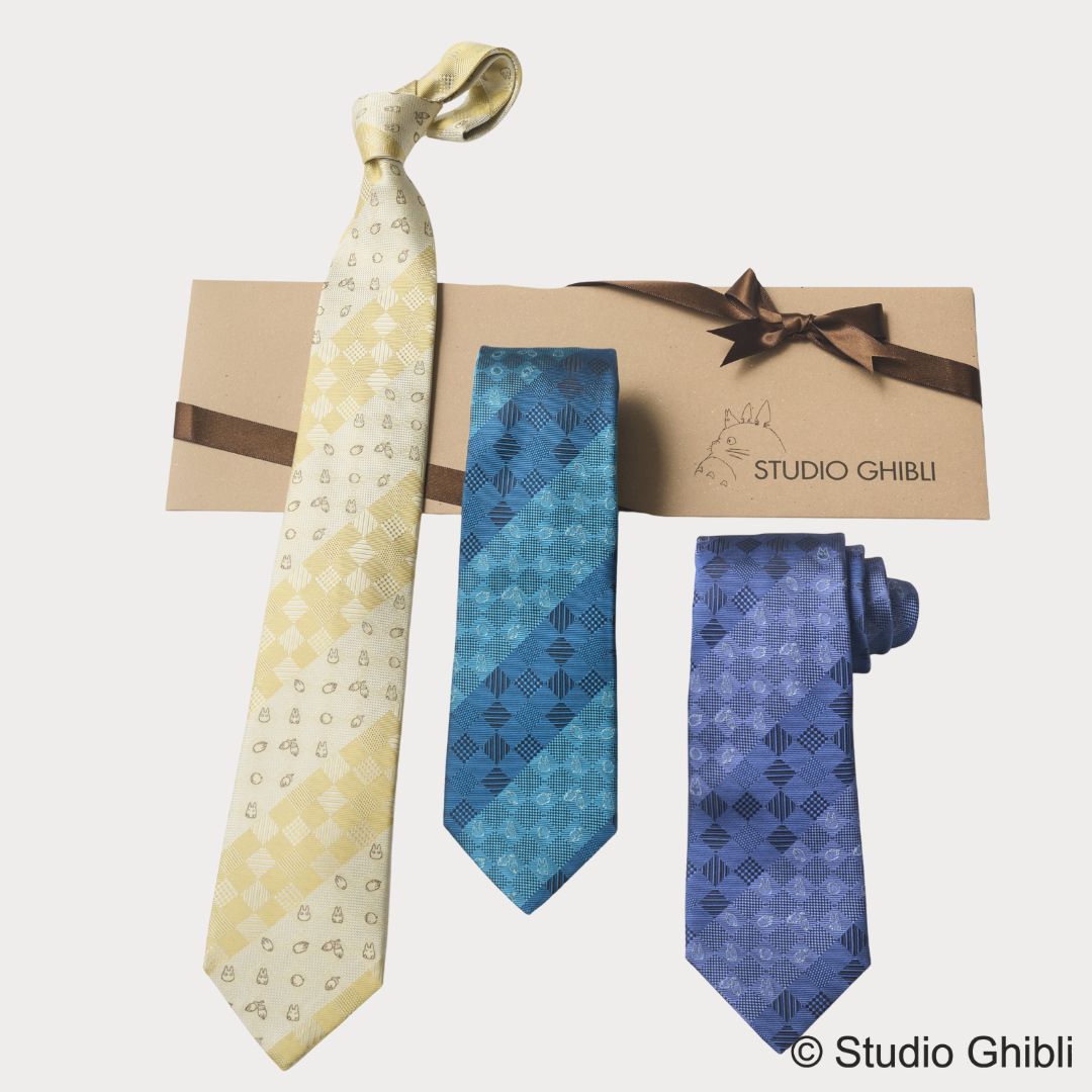 世代を超えて愛されるジブリ作品『となりのトトロ』の世界を上品に表現したネクタイコレクションです。トトロやマックロクロスケ、さらには、どんぐりや木の実、きのこといった豊かな自然のモチーフを、定番の柄の中へさりげなく配置しました。普段使いしやすい落ち着いたデザインを中心に、バリエーション豊富に取り揃えています。