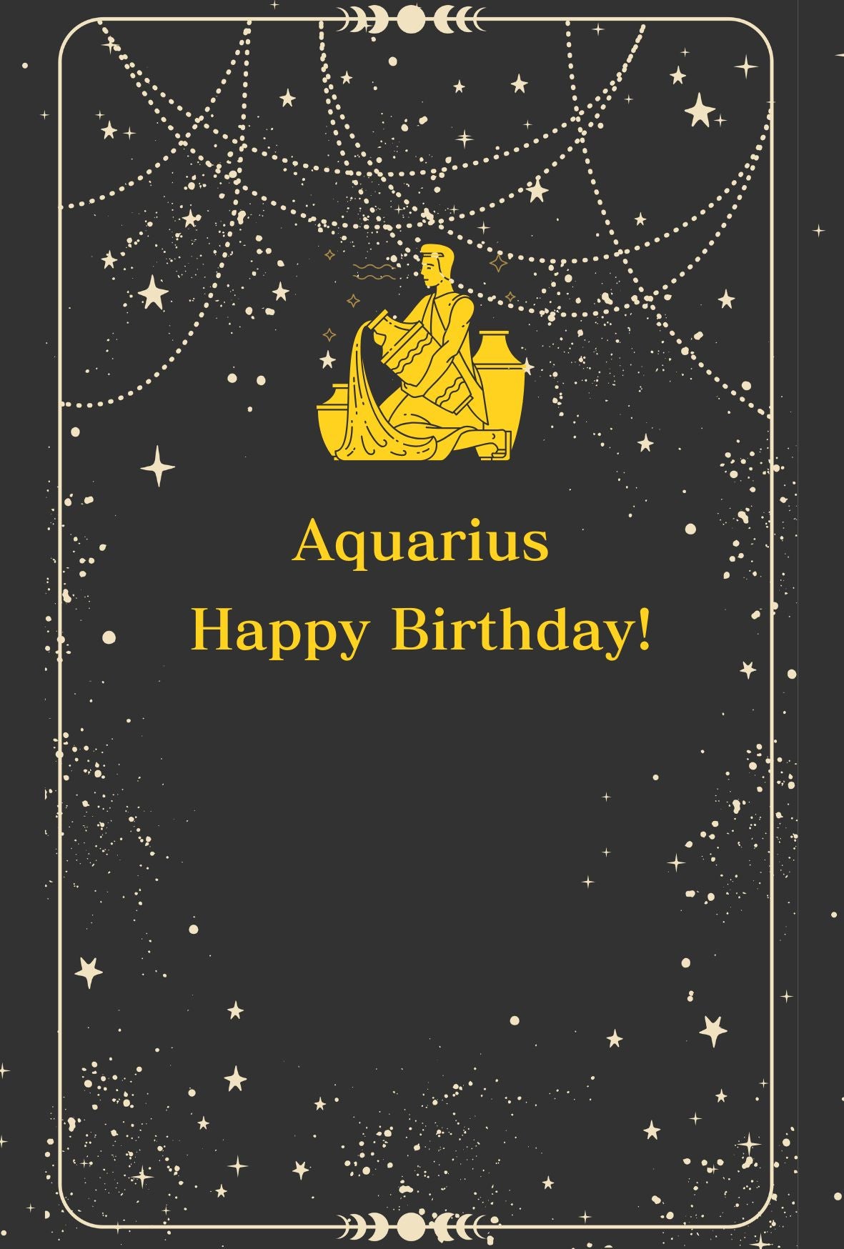 【メッセージカード】 2月の星座、水瓶座(Aquarius)と星の瞬き | 誕生日 お祝い 2月 バースデーカード 無料印字サービス